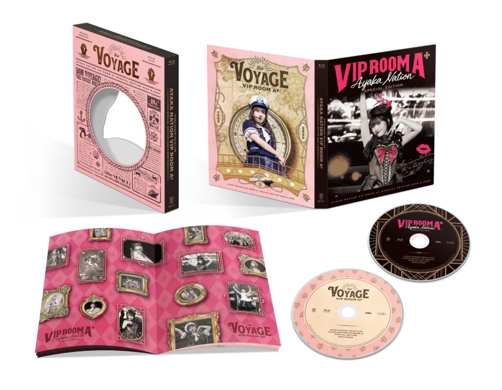 今回発売される作品は、2024年9月28日(土)に東京・Zepp Hanedaにて開催されたソロコンサート『AYAKA NATION Special Edition「VIP ROOM A⁺」』と、2025年6月14日(土)に東京・TOKYO GARDEN THEATERで開催されたソロコンサート『AYAKA NATION 2025 VIP ROOM A⁺ ~the Voyage~』の2作が1つのパッケージに収録されている豪華な作品となっている。10月26日(日)までがファンクラブ先行予約期間となっており、
