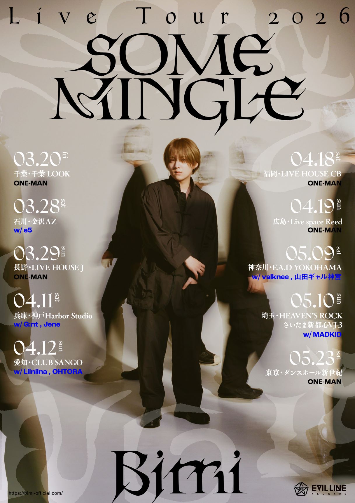 Bimi(ビミ) 3月より開催のツアータイトルが「Bimi Live Tour 2026 -SOME MINGLE-」に決定! さらに、ツアーキービジュアル公開とe5・valknee・MADKIDなど 豪華アーティストらの対バン出演も決定!