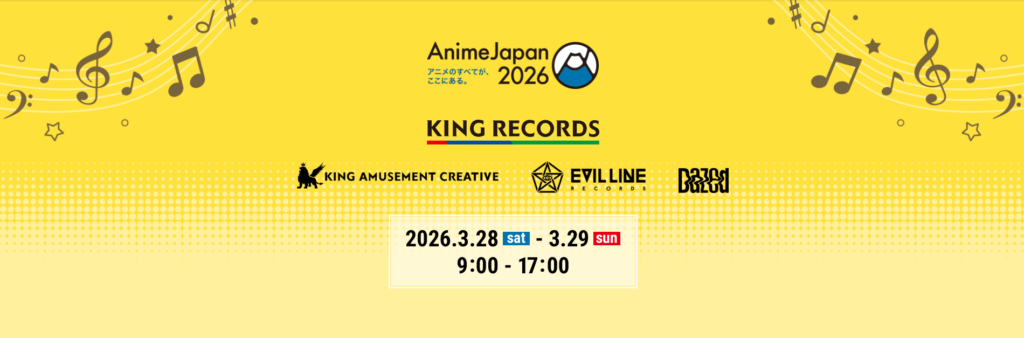 2026年3月28日(土)・29日(日)に東京ビッグサイトで実施される世界最大級のアニメイベント「AnimeJapan 2026」のキングレコードブース特設サイトがオープンしました!