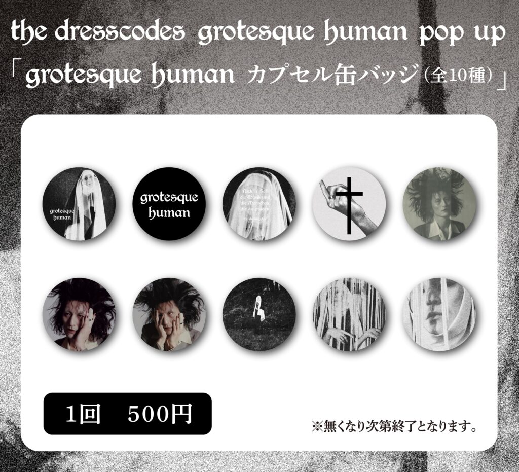 ※「grotesque human カプセル缶バッジ(全10種)」の後日ELRstoreでの販売はございません。