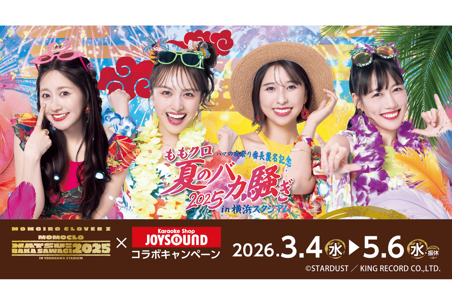 3月4日(水)に発売される『ハマの夜祭り番長襲名記念ももクロ夏のバカ騒ぎ2025 in 横浜スタジアム』LIVE Blu-ray & DVDのリリースを記念し、カラオケショップ JOYSOUNDとのコラボキャンペーンが3月4日(水)から5月6日(水・振休)の期間に開催されることが決定しました!