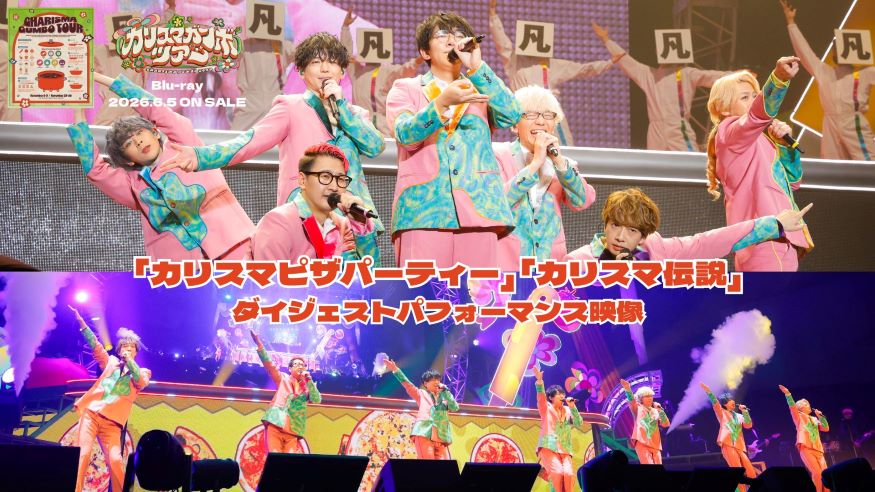 6月5日に発売される、超人的シェアハウスストーリー『カリスマ』のライブ公演『カリスマガンボツアー』のBlu-rayより、「カリスマピザパーティー」「カリスマ伝説」の2曲ダイジェストパフォーマンス映像が公式YouTubeチャンネルにて公開されました!